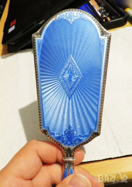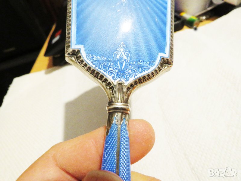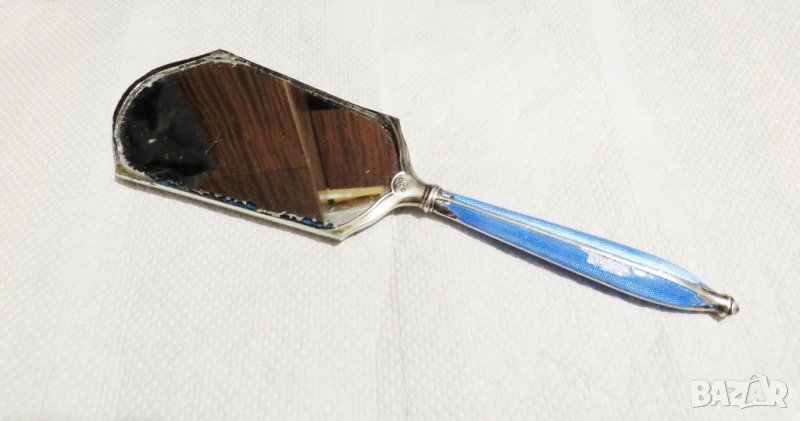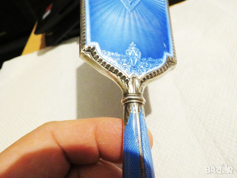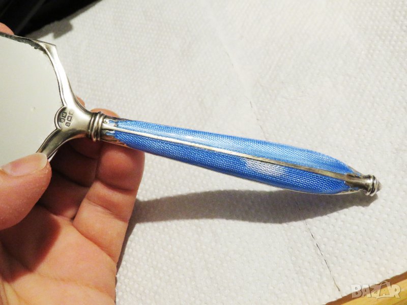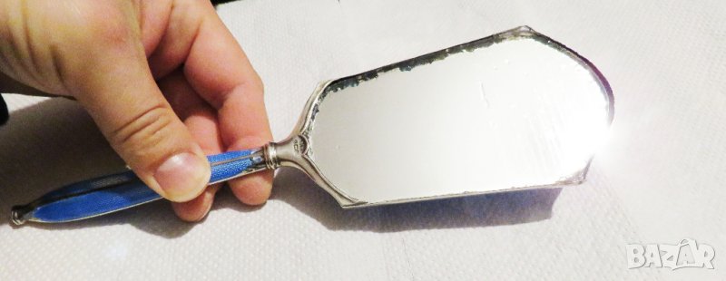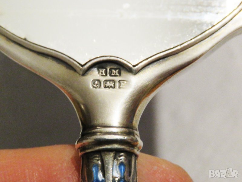 Старинно английско сребърно аристократично огледало с емайл Birmingham England 1773 - 1924 година - за ценители и колекционери .Дължина на предмета - 24 см.