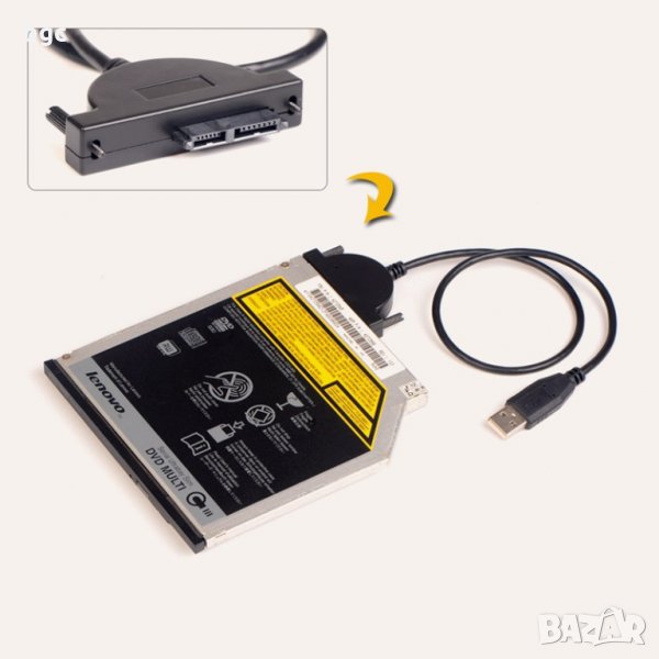 USB Кабел за Записващи Оптични устройства Засписвачки DVD CD Slimline SATA Laptop CD/DVD Rom Optical