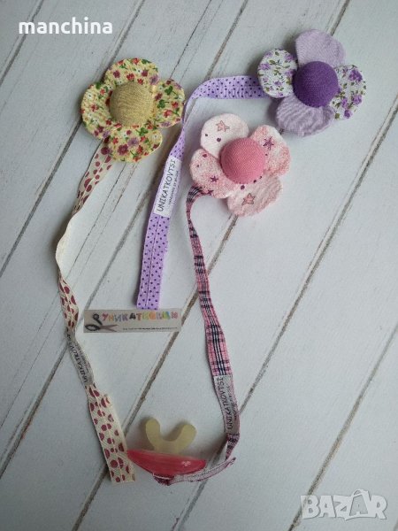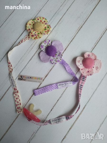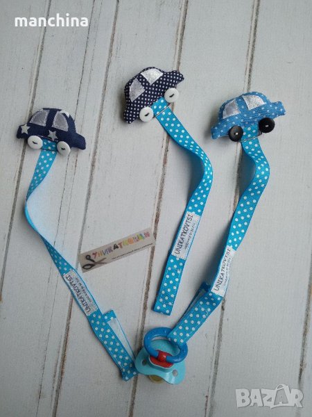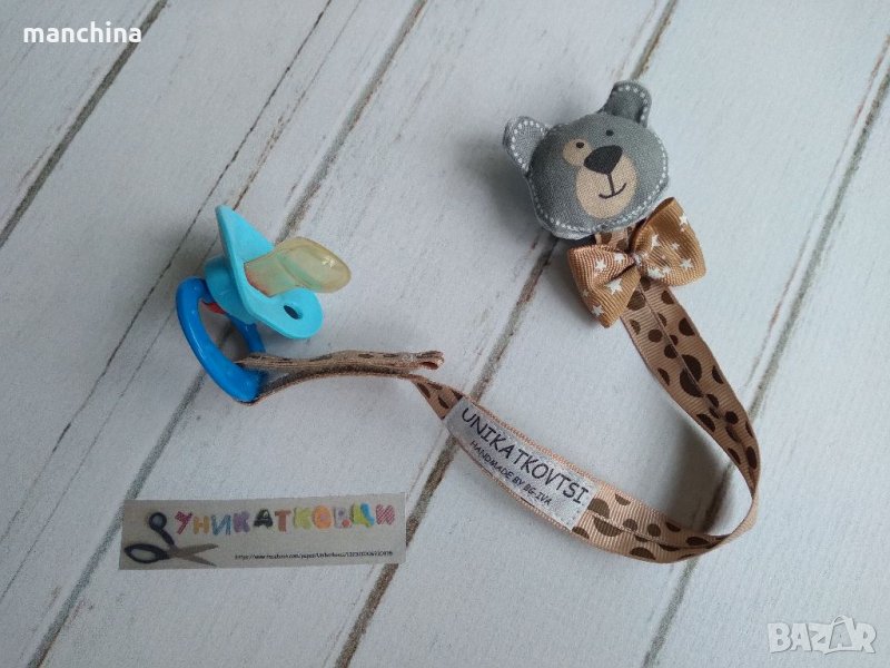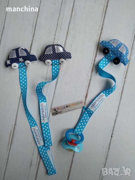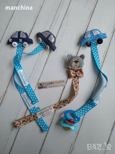 Ръчно изработен клипс за биберон-залъгалка за момче или за момиче. Изработен от текстил с метален клипс за закопчаване. Възможност за избор на десен.