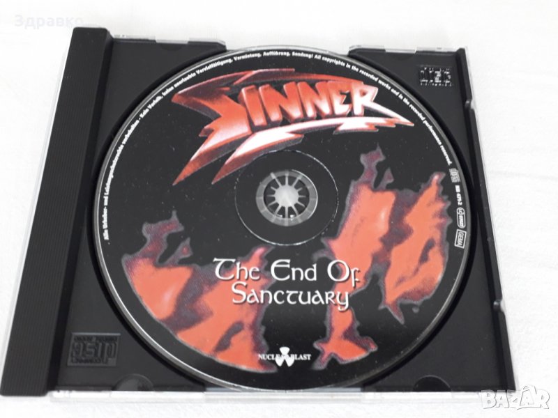 SINNER – The End Of Sanctuary от 2000 год. - Germany, Heavy Metal Състоянието на диска е отлично. Диска е БЕЗ обложки! Цената е крайна и не подлежи на коментар! Телефон не винаги мога да вдигам, затова за връзка за предпочитане е личното съобщение. При желание мога да направя повече и по-детайлни снимки.