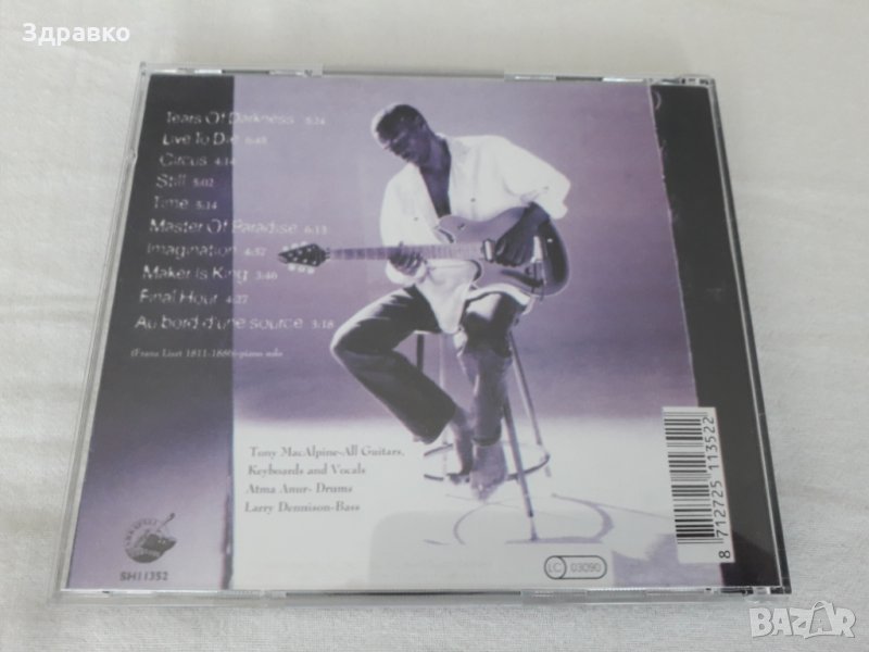 TONY MACALPINE – Master Of Paradise от 1999 год. Състоянието на диска е отлично. Диска е без предна обложка, задната си е заводска. Цената е крайна и не подлежи на коментар! Телефон не винаги мога да вдигам, затова за връзка за предпочитане е личното съобщение. При желание мога да направя повече и по-детайлни снимки.