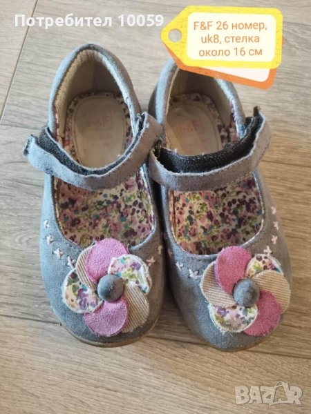 Снимка 12: Сиви велурени обувки с каишка, с декоративно цвете, размер 26, стелка около 16 см, цена 7 лв