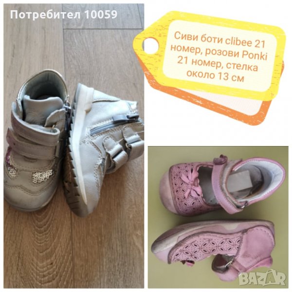 Снимка 8: Сиви обувки с цип и велкро лепки Clibee 21 номер, ожулени отпред, но носени много малко, и розови Понки 21 номер, активно носени, двата чифта за 9 лв.