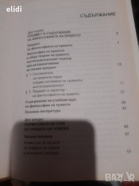 Настоящият учебен курс обхваща класически и нови проблеми на философията на правото. В резултат на това се оформиха три самостоятелни раздела. Първият е посветен на Методологията на юриспруденцията. Вторият обхваща Аксиологията на правото. Третият се отнася до каузалните зависимости на правото. От дидактична гледна точка стремежът е бил с учебния курс да се постигнат определени резултати. Така например при излагането на въпросите с приносен характер стремежът е бил да се даде пример как следва да се доказват научни истини.