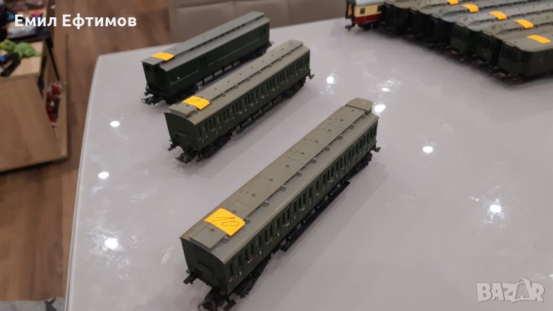 съвместими с Пико,1:87 HO, без кутии, описание по долу. Номерът от снимката на модела съответства на номера в описанието:1. Fleischman- вагон расторант с пантограф,осветен, без забележки- цена 40лв.;Продаден !!!