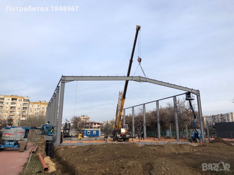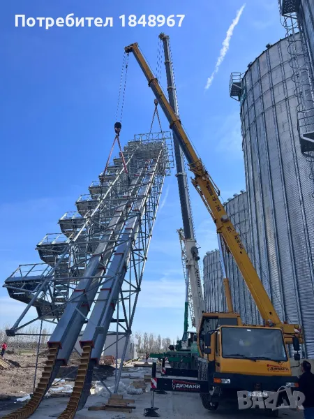 Товаро-разтоварни услуги, преместване на машини, съоръжения, конструкции, контейнери, фургони. Монтаж и демонтаж на метални халета, бетонни гаражни клетки, огради, билбордове. Издигане на хаспели, козлови кранове, термопанели, климатици, колони, кофраж, реклами и други материали.