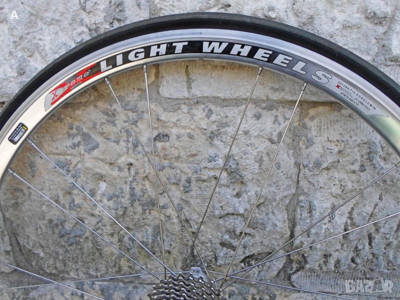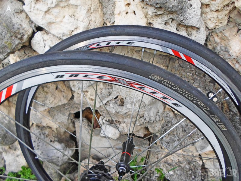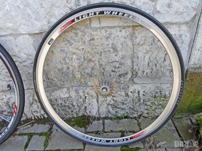 Шосейни капли клинчери в перфектно състояние!Bontrager RaceXlite /650 гр/титаниев QR,добра гума. Цена 150 лв /имам и задна с главина Powertap,не зная дали работи/. Задна Xtreme Light Wheels/по спомен около 900гр/неразличима от нова, с Шимано 6700 касета 12/25. Цена 150 лв.