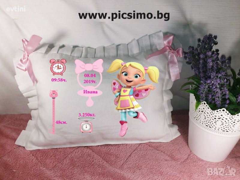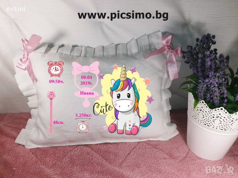 Декоративна възглавничка бебешка/детска визитка → Обява 32646391