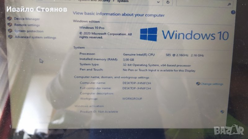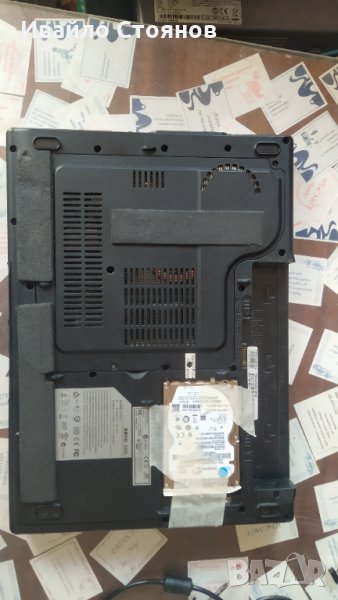 Лаптопа е без капаче за твърдия диск и без зарядно. Батерията държи известно време.
