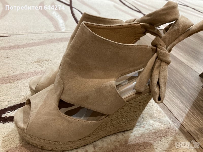 Велурени Дамски обувки на платформа в телесен цвят → Обява 32658431