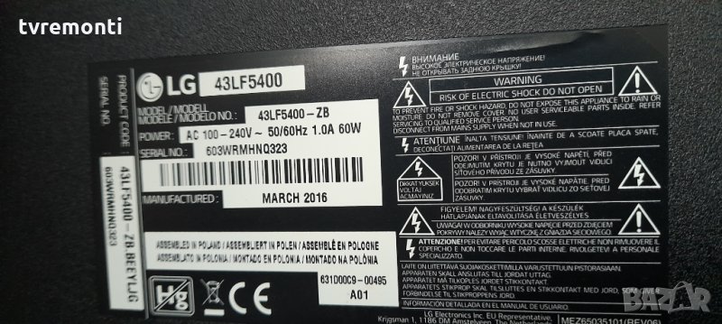Захранваща платка EAX66162901 EAY63630301, снимка 1 - Части и Платки - 32658614 Захранваща платка EAX66162901 EAY63630301, снимка 2 - Части и Платки - 32658614 Захранваща платка EAX66162901 EAY63630301, снимка 3 - Части и Платки - 32658614 Захранваща платка EAX66162901 EAY63630301, снимка 4 - Части и Платки - 32658614 Захранваща платка EAX66162901 EAY63630301, снимка 5 - Части и Платки - 32658614 Захранваща платка EAX66162901 EAY63630301, снимка 6 - Части и Платки - 32658614 Захранваща платка EAX66162901 EAY63630301, снимка 7 - Части и Платки - 32658614 Захранваща платка EAX66162901 EAY63630301, снимка 8 - Части и Платки - 32658614 Захранваща платка EAX66162901 EAY63630301, снимка 9 - Части и Платки - 32658614 1/9