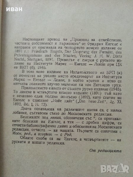 Произход на семейството,частната собственост и държавата - Ф.Енгелс - 1947 г. → Обява 32659568