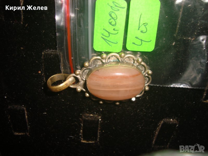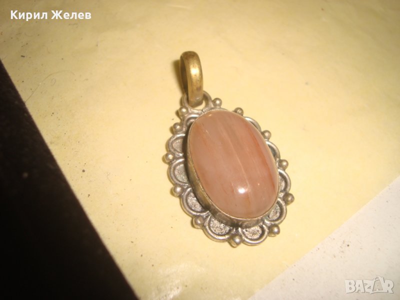 БРОНЗОВ СТАРИНЕН РЕТРО АРТ ПЕНДАНТ с ИВИЧЕСТ ШЛИФОВАН НЕФРИТ АРТ ДЕКО СТИЛ 21084