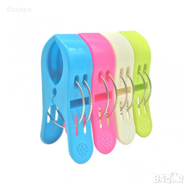 Комплект от 4 броя големи щипки за хавлии за шезлонг или за простиране на олекотени завивки. С тях лесно ще защипеш големи неща като