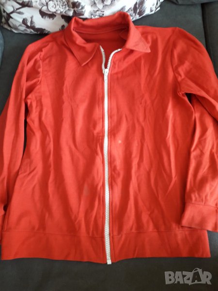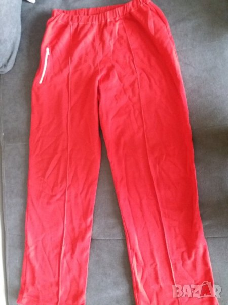 Мъжки спортен екип горнище с бял цип и долнище с ластик - тип панталон с 1 джоб, наситен червен цвят. Материя трикотаж, размер около М-Л около №46-48-до 50, за ръст около и до 176 см. Отговарям на съобщения тук, или т. 0887780808, изпращам с куриер или лично предаване в София.