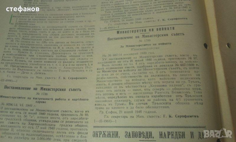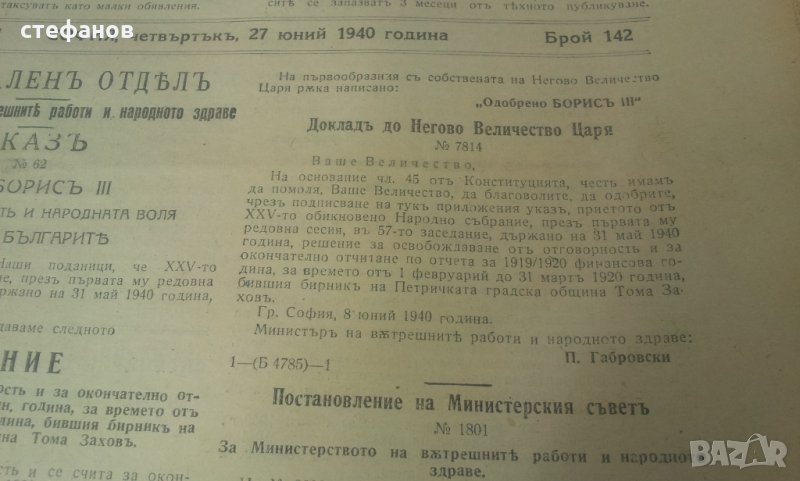 Държавни вестници от царска България Борис Трети и Богдан Филов