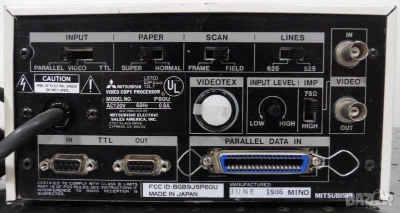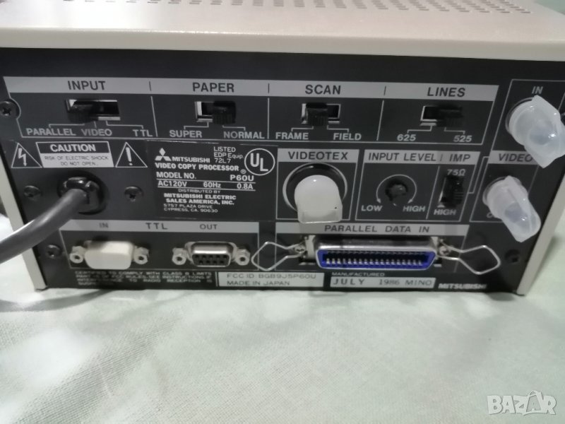 Mitsubishi,Made in Japan,принтер/скенер медицинска техника за ехографи,монитори - (VideoCopy processor).Изходно/входни конектори за свързване с други модули - BNC-Video-In/Out,Parallel(LPT),TTL(Com-In/Out).Тестван,работи на 120v,цената е без адаптора,/адаптор от 220v на 110v има и в нашите магазини-на последната снимка на цена 50 лв./Внесен от Белгия,с руло хартия/110 мм/ в магазина.