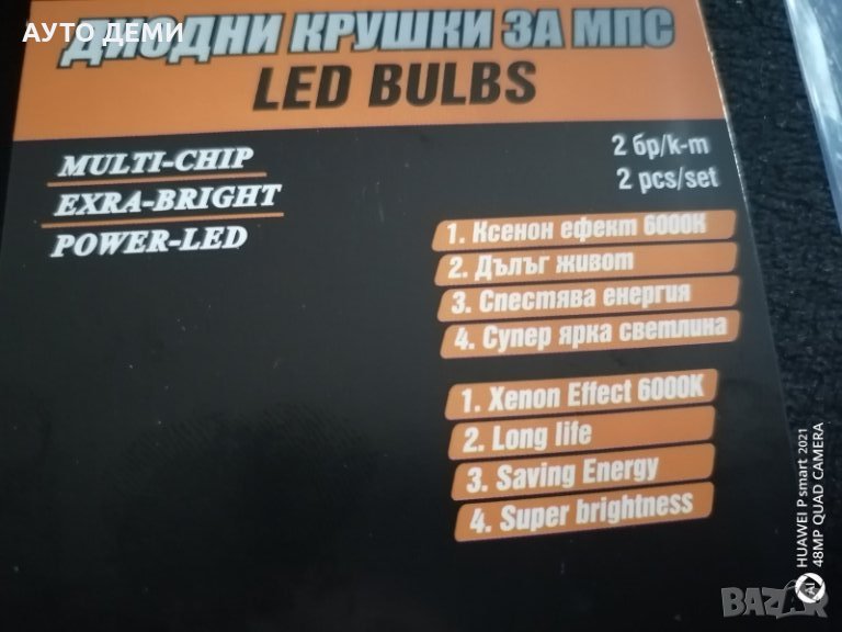 Продавам нови комплекти ЛЕД LED светодиодни крушки с 9 броя мощтни светодиода светещи 5 пъти повече от стандартни обикновенни крушки модел Т10.
