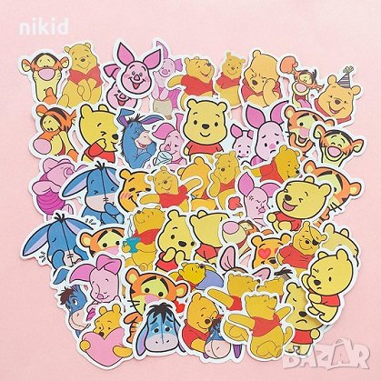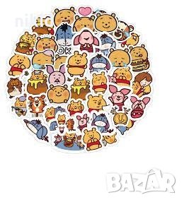 50 бр Мечо Пух графити самозалепващи лепенки стикери за украса декор картонена торта → Обява 32678756