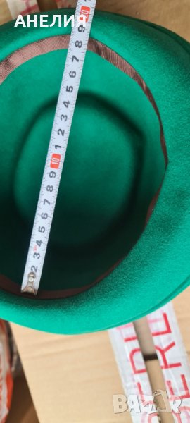 Елегантна дамска шапка, наситено зелен цвят, качествен плътен филц, обиколка - 56,5 - 57см,