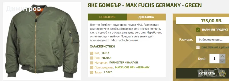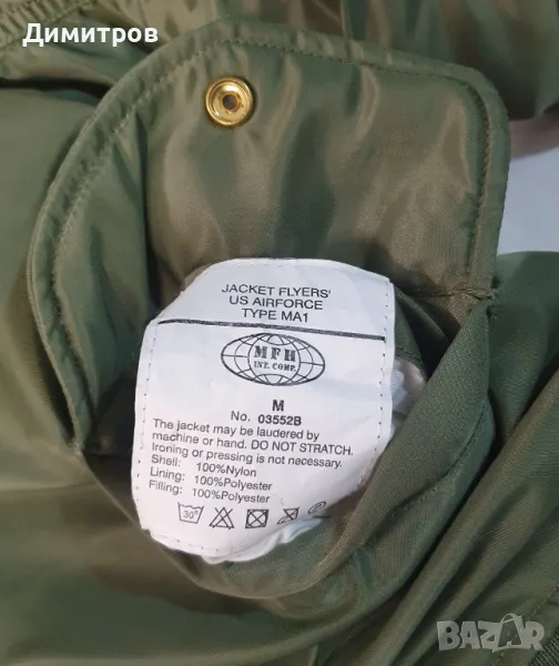 3. Яке бомбър MFH, MA-1 - ново, цвят - петролно-зелен, размер по етикет М, но отговаря на L.