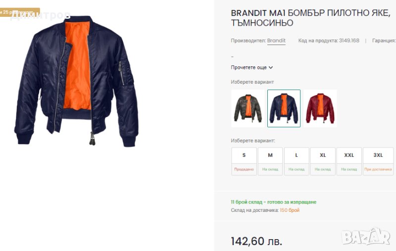 1. Яке бомбър Brandit, МА-1 - ново, с етикет. Цвят - Dark Navy, размер - 2XL.