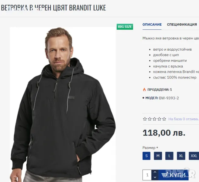 2. Зимен анорак Brandit - нов, с етикет. Цвят - черен, размер - 2XL. Промазка, подплатен с полар, цип под лявата мишница.