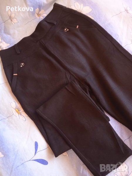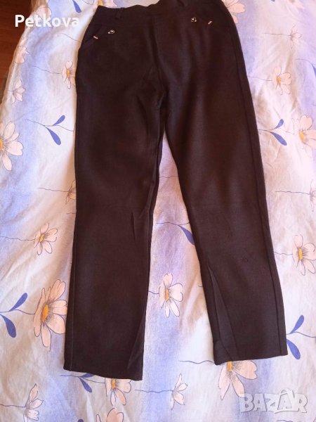 Чи нов, без етикет. Купих го по Интернет, но се оказа малък. Чисто нов. Никога не е носен. Цвят черен. Дължина е 102см.в кръста в неразтегнато положение е 36см,с дебел ластик. Ханш 48см.Ширина бедро 26см.Всички мерки са в неразтегнато положение. Има еластичност и разтегливост. Материята е памук с ликра. Много плътен, като панталон е. НЕ прозира изобщо. Има странични джобове. Клина е тип панталон, слим крачол. Пращам с преглед и тест. Разгледайте и другите ми обяви.