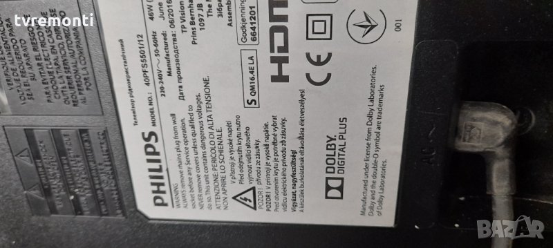 борда е гарантирано работещ Демонтиран от телевизор PHILIPS 40PFS5501/12 със счупен дисплей TPT400LA-HN02.S тествана от нашия техник