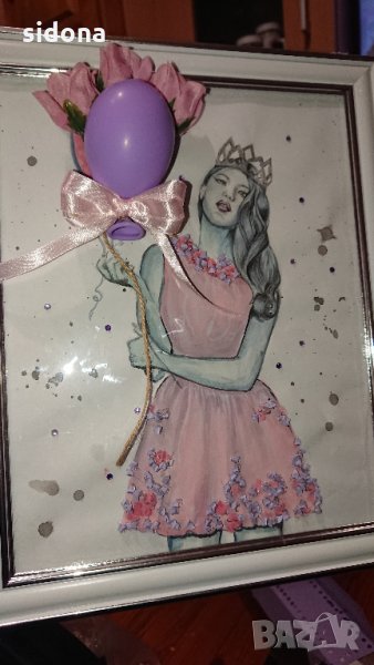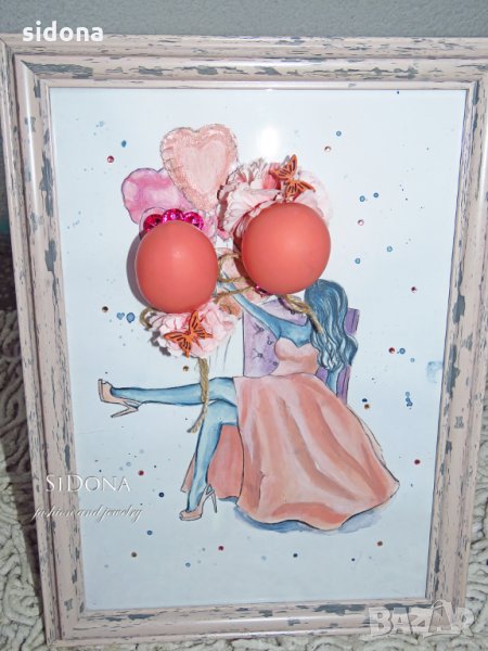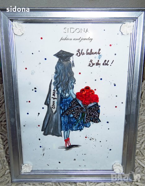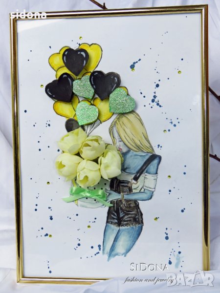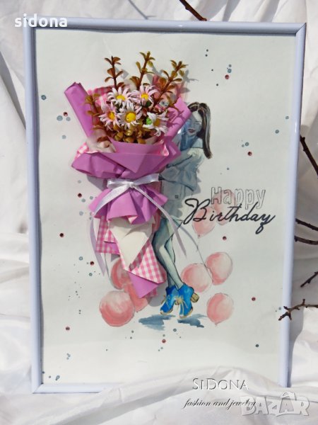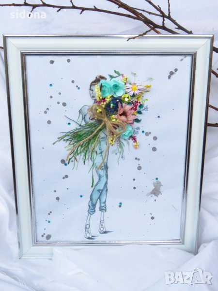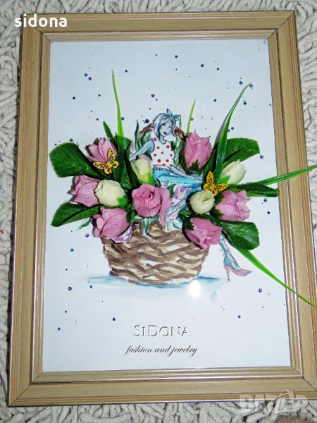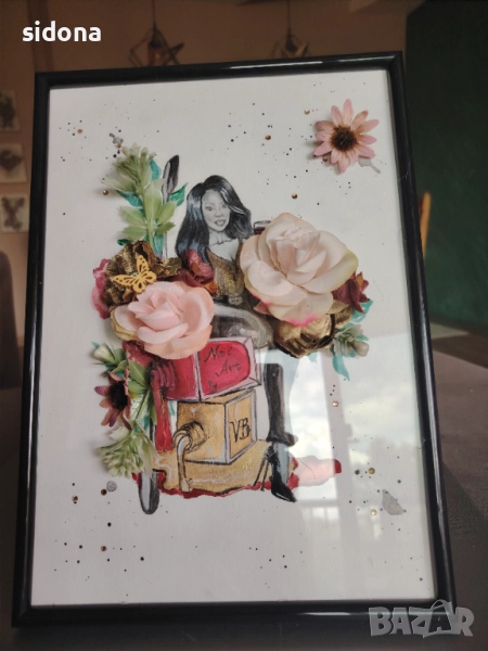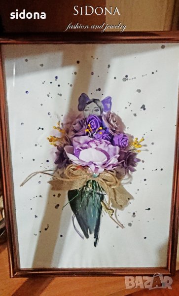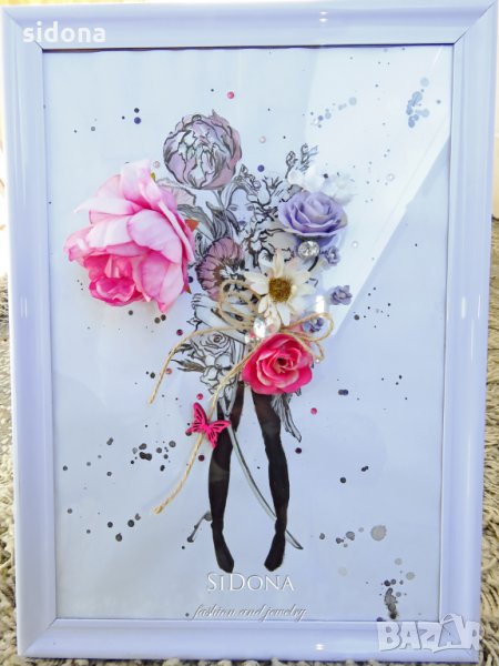Декоративни пана в рамка във формат А4. Ръчно рисувни с акрил с 3D елементи от цветя и стъкло.