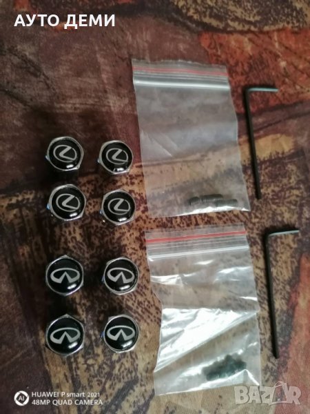Продавам високо качествени със стандартни резби метални капачки за вентили на гуми със защита от кражба на автомобил джип с вградени емблеми на марките автомобили Лексус Lexus и Инфинити Infiniti .