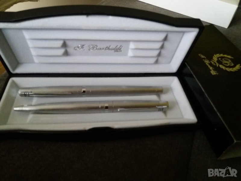 Комплект писалка и химикалка Bartholdi Italy метални в кутия. Нови, неупотребявани. Подходящо за любители колекционери, за лично ползване или за луксозен позарък. Отговарям на съобщения тук, или тел. 0887780808, изпращам с куриер с отстъпка, преглед и тест, или лично предаване в София.