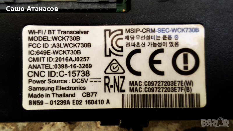 Wi-Fi/BT Transceiver : BN59-01239A / WCK730B - 25лв.