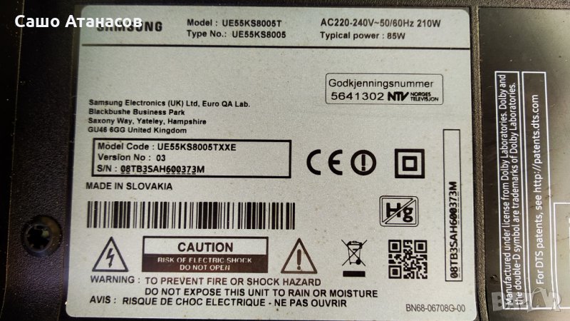 SAMSUNG UE55KS8005T с дефектна матрица ,BN44-00879A ,BN41-02504A ,WCK730B ,CY-QK055FLAV1H → Обява 32703106