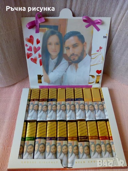 Кутия бонбони мерси 20броя декорирани със ваша снимка ,цена на кутията 25лв