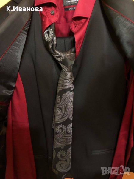 Предлагам Мъжки костюм "Теодор", подходящ за млади мъже и момчета. Идеален е за бал.Комплектът се състой от: 1) Мъжко сако;2) Мъжки панталон;3) Риза; 4) Елек; 5) Вратовръзка; 6) Кърпичка за джоб; 7) Обувки Теодор – 41 размер; 8) Обувки естествена кожа (черна естествена кожа отвътре и отвън. Размер 42). Комплектът е комбиниран и обличан само веднъж за повода, за който е взет – Бал. Няма абсолютно никакви забележки. Без следи от употреба. Предлага се в оригиналните кутии и калъфи, в които е взет, както и всички етикети за покупки на всеки елемент (плюс касов бон/фактура).Размерите личат ясно на всеки от етикетите. При въпроси, моля позвънете директно или ми пишете. Цената е за всичко накуп. При интерес за конкретен артикул, моля звънете или пишете (по договаряне).