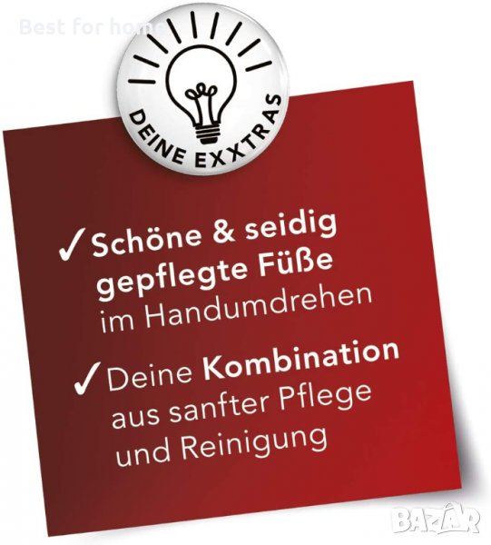 Забележки: Продуктът е предназначен за премахване на мазоли и суха кожа на краката, както и за последваща грижа за краката. Препаратът за отстраняване на мазоли може да се използва и за работещи мазоли, напр. на ръцете. Продуктът е подходящ за сухо и мокро използване. Използвайте само върху твърда кожа, а не върху мека кожа.