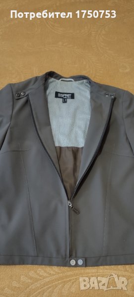 Чудесен модел , спортно-елегантно яке на ESPRIT. Подходящо е за пролет и лято. Размер по европейската номерация 38. Цвят маслинено зелен. Якето е ново , без етикет. Безупречно качество. Подробни размери: дълж. от рамо до долу 57 см; дълж. на ръкав 61 см; от рамо до рамо 41 см; ширина при гърдите 47 см.
