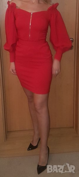 Роклята е нова на известна турска фирма има еластичност с буфан ръкав с коланче подплатена на бюста