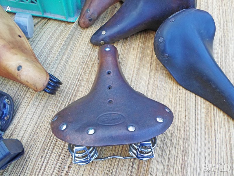 Кожени седалки за градски велосипеди в много добро състояние .Brooks B66 Champion/с кожена чантичка не Brooks/120 лв.Brooks B66 120 лв./със оригиналните конзоли за седалковото колче/.Brooks Grips Slender.*130мм//Продадени//*.R82 /бежова/75 лв.Myove/Diamant/75 лв.Gyes /Продадена/