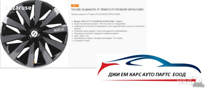 Нов К-т Тасове за Джанти 15" Sparco PC1591BKGR Черно/Сиво - 60.20 лв. → Обява 32723844