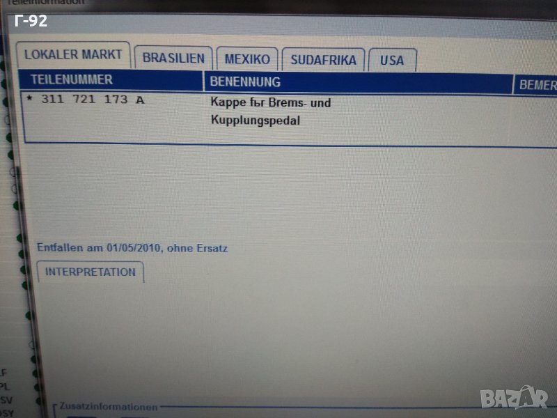 311721173A**NEU**VAG*Покритие на педала (гумичка), спирачен педал