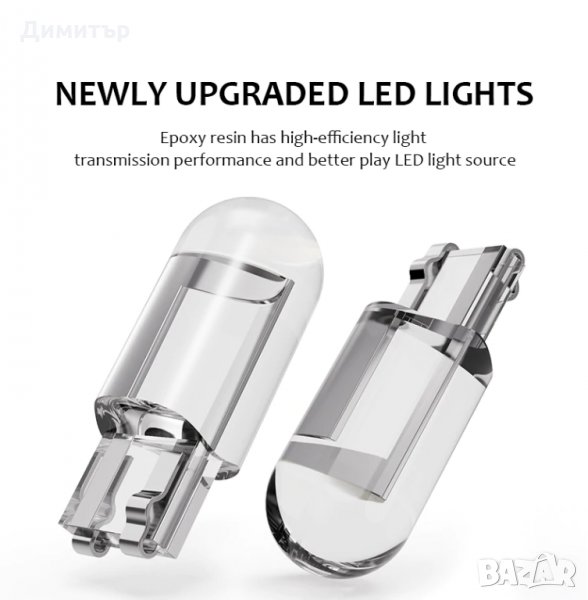 Снимки от 6 до 11 - БЯЛА СВЕТЛИНА 6000К, W5W 194 T10 Стъклен корпус LED крушка за кола Бяла