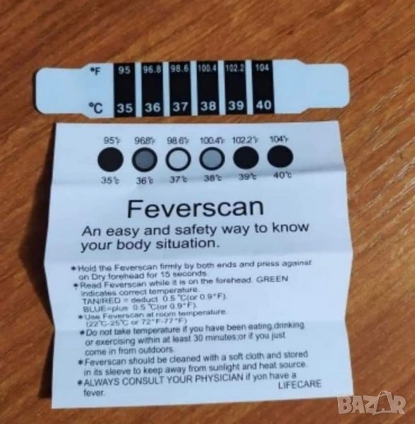 Лентички за бързо мерене на температура -2 броя- чисто нови. За многократна употреба. Поставя се на челото и квадратчето със съответната температура се оцветява. Мери за секунди.Предназначена и много удобна за малки деца, възрастни и лежащо болни. Нови! 2 броя многократни, които се ползват с години за 10 лв общо.