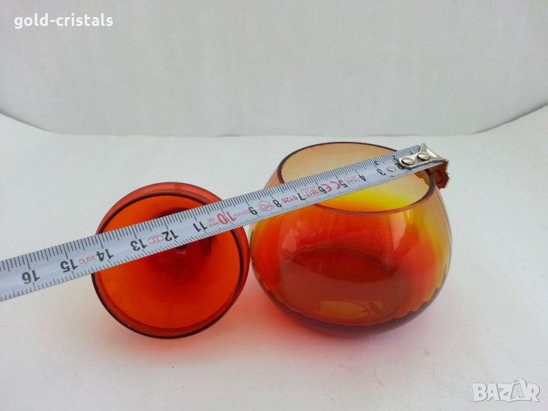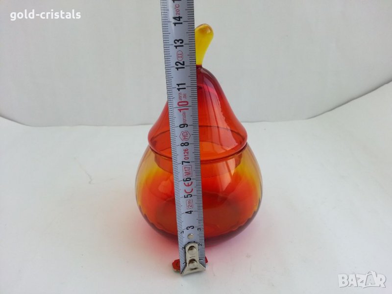 Стар български кристал бонбониера захарница цветно стъкло ретро арт декор винтидж колекция стари антикварни предмети обзавеждане за дома и семейството подходяща за подарък за ценители и колекционери има и втора с забележка пукнатина на долна част и лепена дръжка на капачето 10лв
