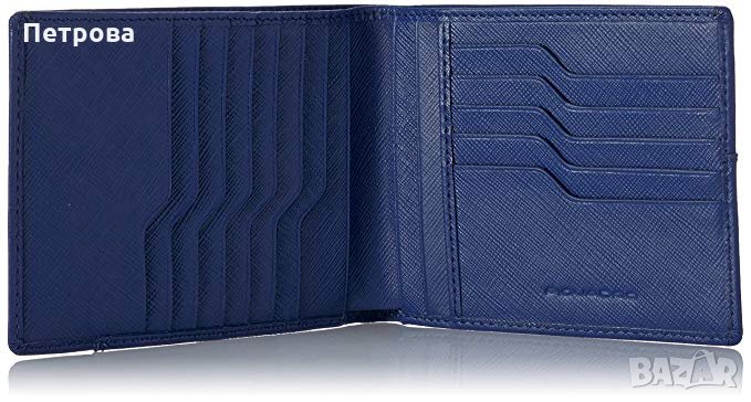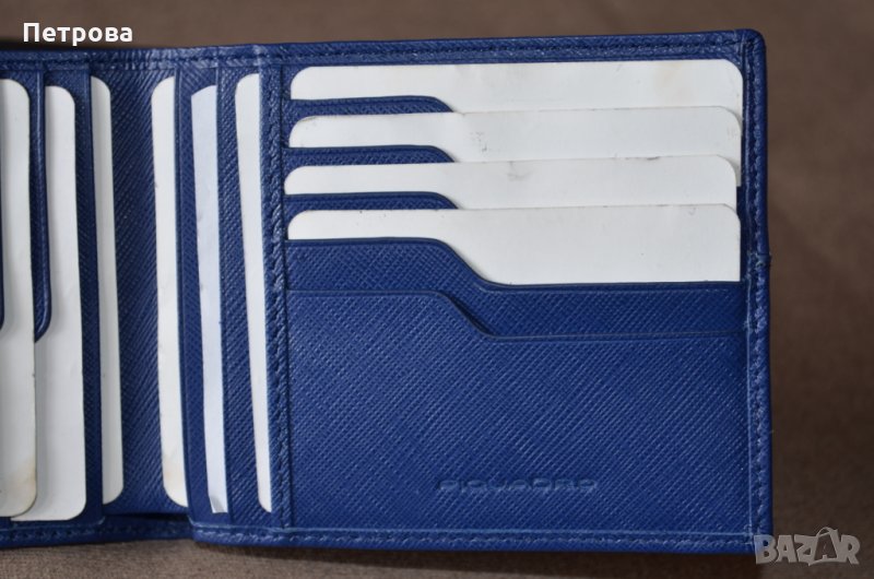 Piquadro Euclide луксозен син хоризонтален портфейл до 17 карти → Обява 32742458