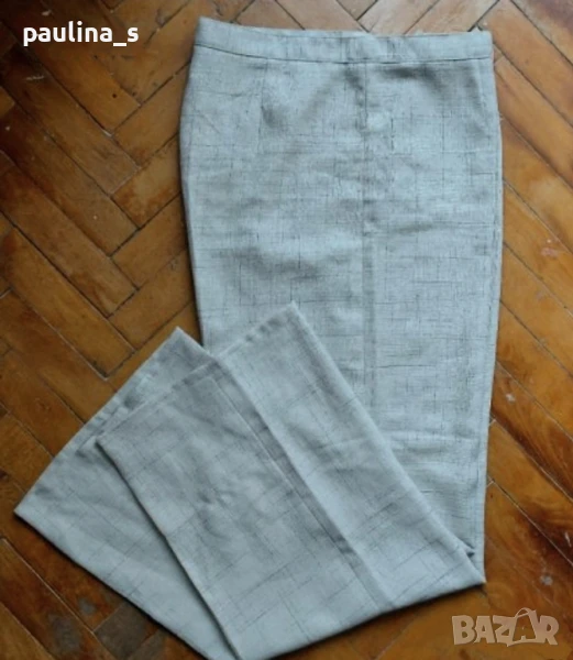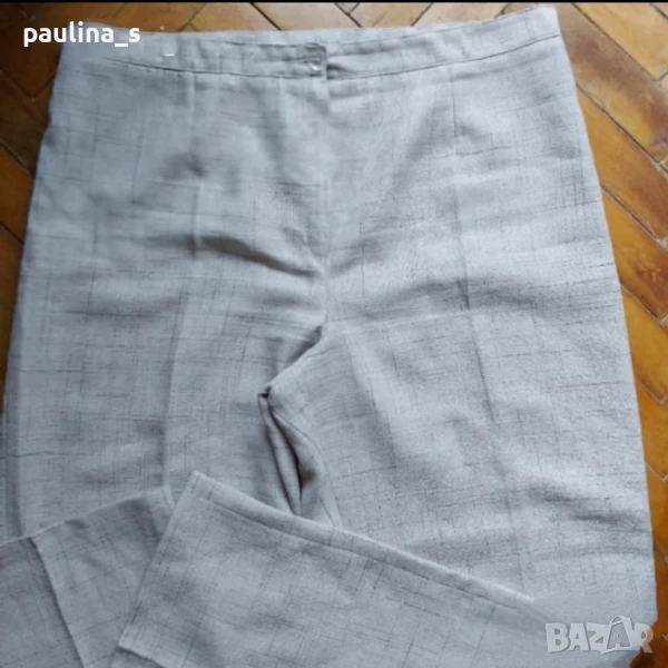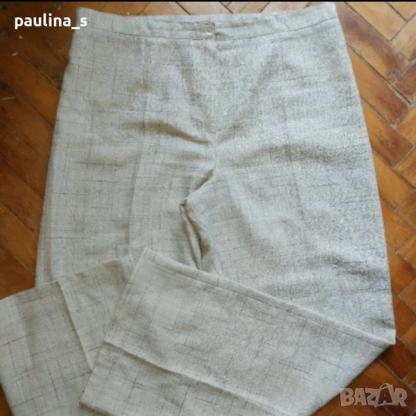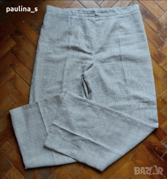 2️⃣ L / 2XL - Копринен панталон с висока талия в меланж - България. Цената е крайна 29,99лв. Екрю панталон с нормална талия в меланж. Материята е релефна, ацетатна коприна и памук - немачкаема, без еластичност. Крачолите са прави до широки. Без дефекти, не е нов.