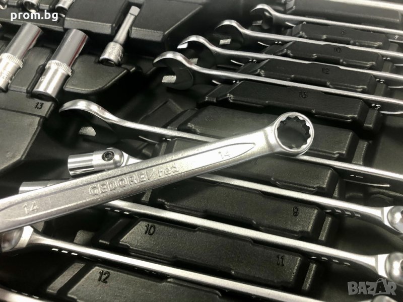 Висококачествен комплект от инструменти за различни приложения от 92 части от новата продуктова линия "червено" на Gedore. Комбинирани гаечни ключове, (вътрешен) шестоъгълник, шестостени, торксови ключове, вложки кръстати PZ и PH, различни размери (1/4 " и 1/2"), висококачествени двупосочни тресчотки и др. Здрав пластмасов калъф в червен дизайн на Gedore. Всички накрайници и инструменти са изработени от висококачествена хром-ванадиева стомана и имат матово хромирано покритие.