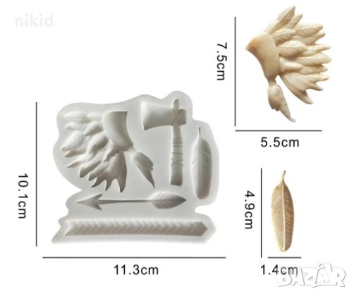 Индиански пера перо сатър брадва стрела силиконов молд форма фондан шоколад → Обява 32751496