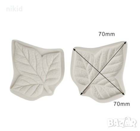 Бръшлян голямо листо 2 части силиконов молд вейнър фондан шоколад декор → Обява 32751541